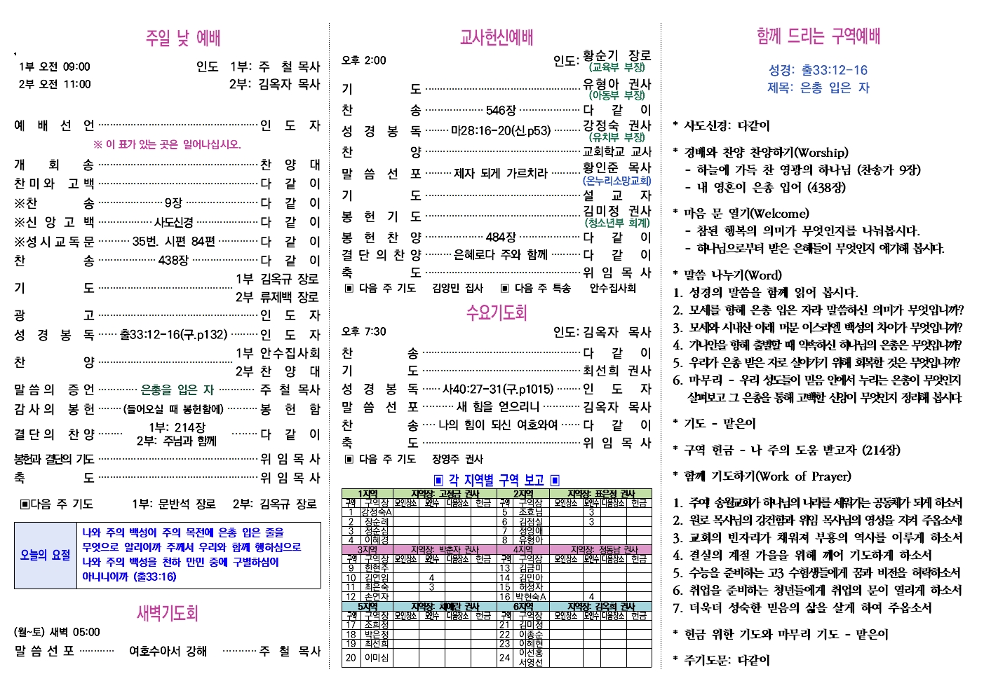 | 이전글 | 2025년 9월 28일 교회소식 및 주보 |