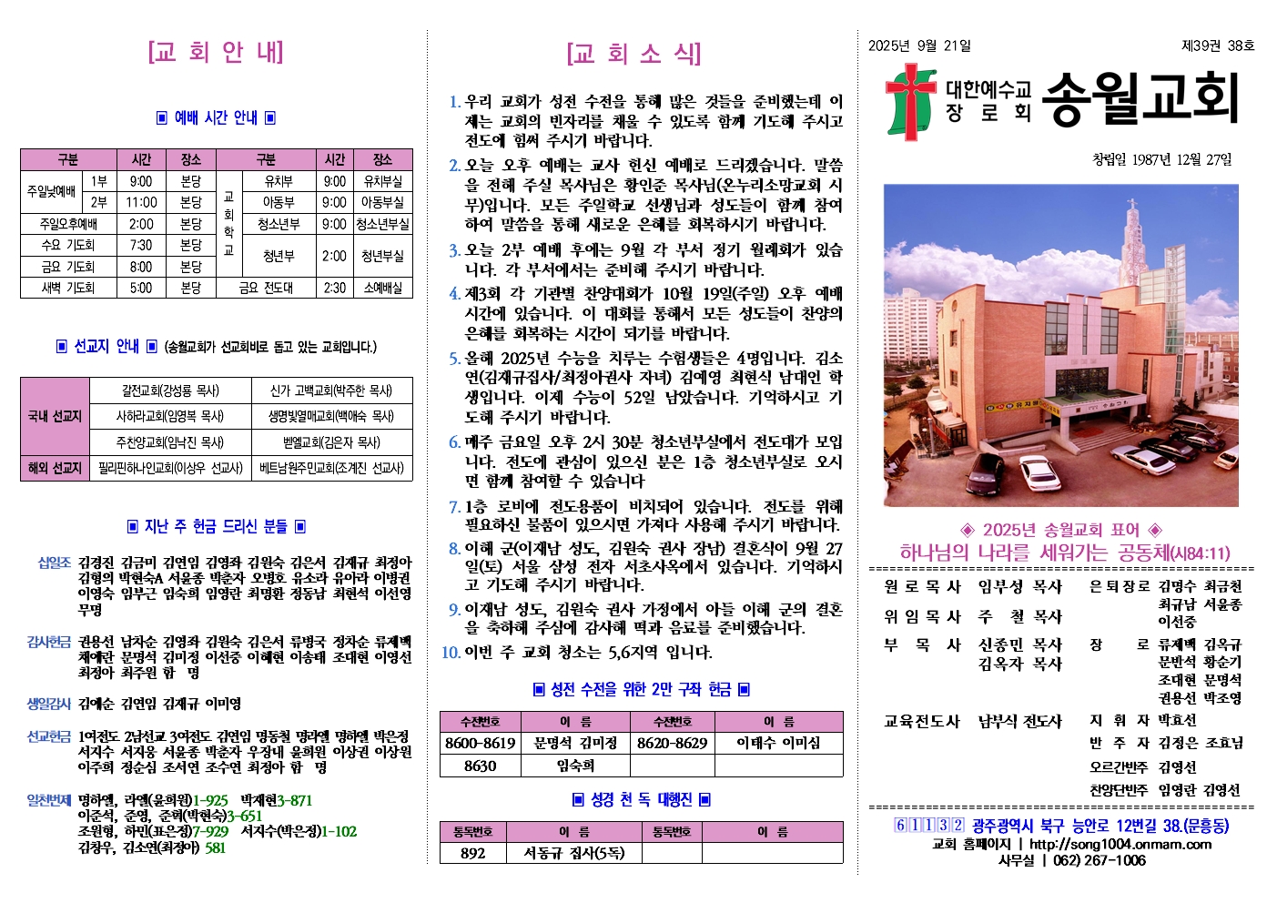 | 다음글 | 2025년 9월 14일 교회소식 및 주보 |