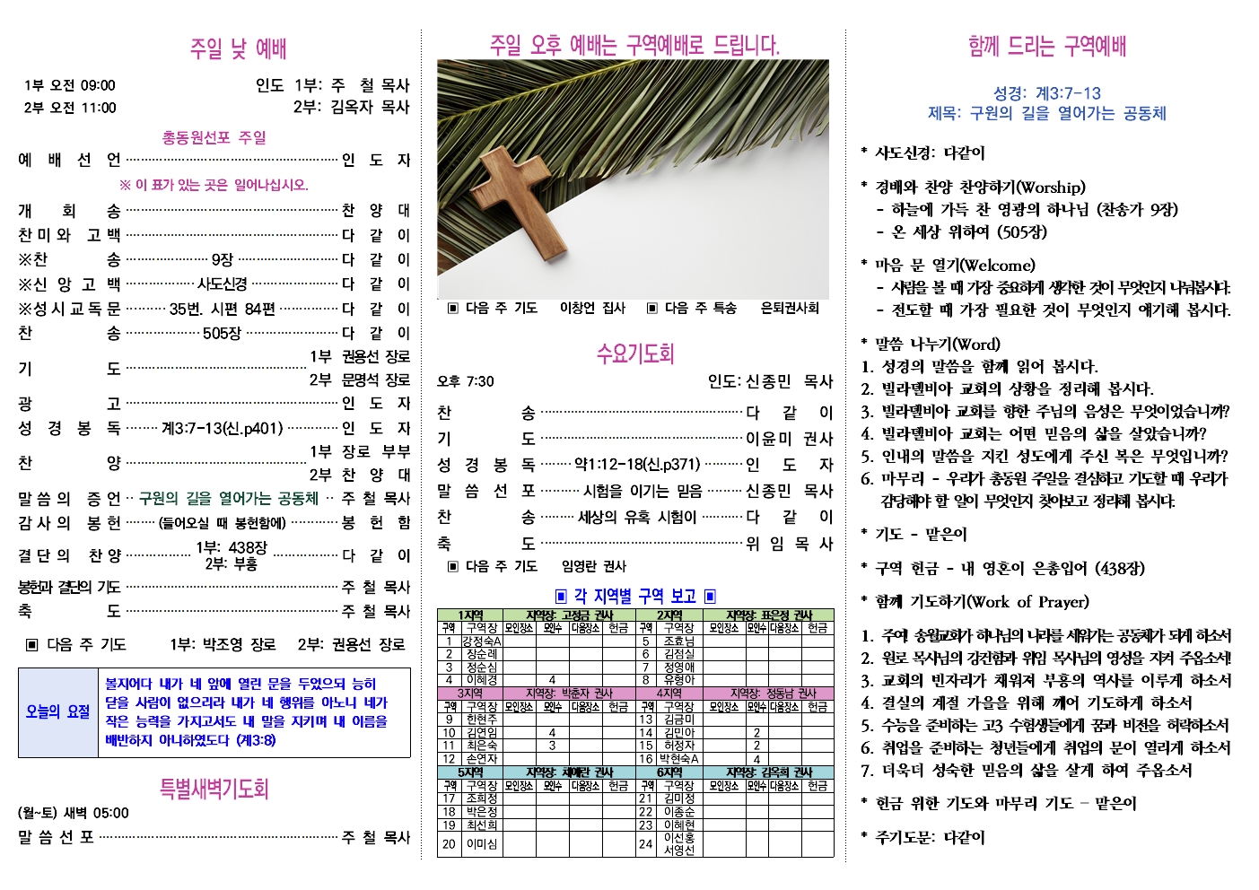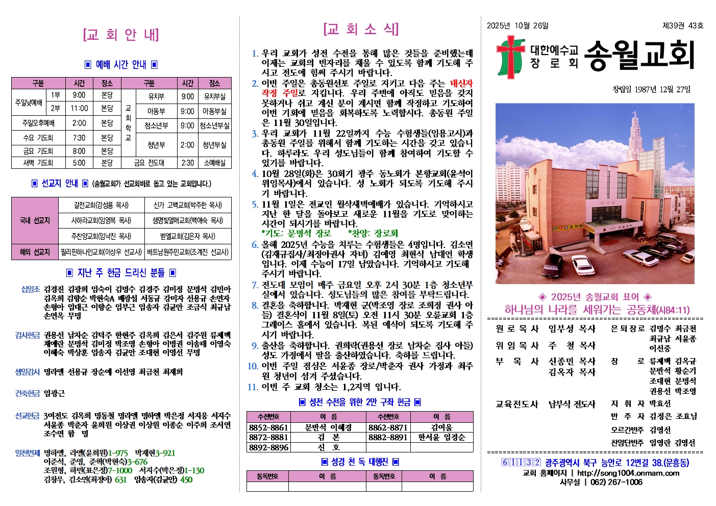 | 이전글 | 2025년 11월 2일 교회소식 및 주보 |