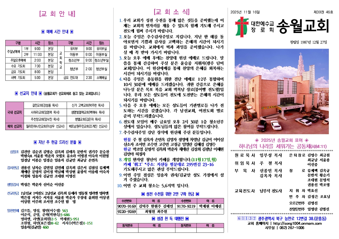 | 다음글 | 2025년 11월 9일 교회소식 및 주보 |