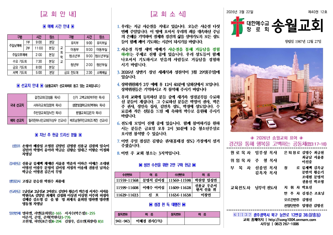 | 다음글 | 2026년 3월15일 교회소식 및 주보 |